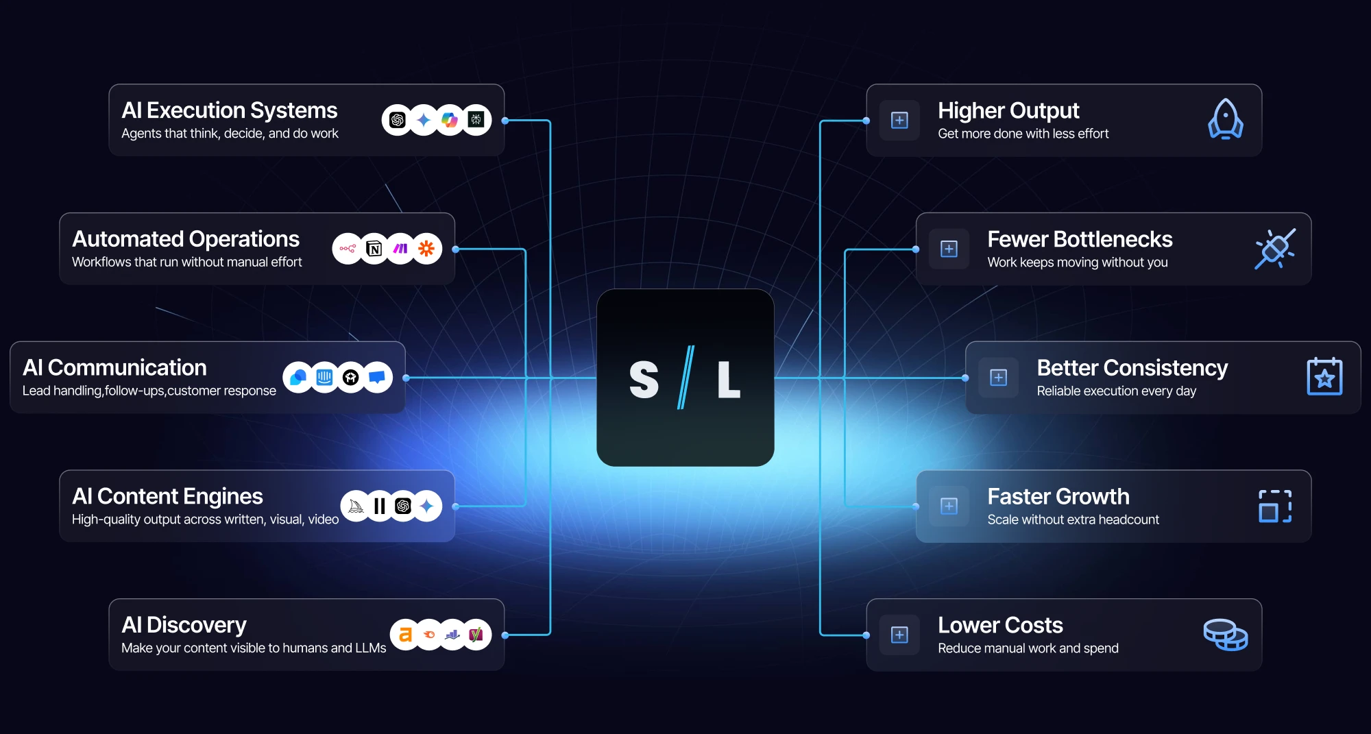 When AI agents, automation workflows, generative systems, and AI-ready SEO work together, the results hit every level of your work – from your personal day-to-day to how your entire business runs.